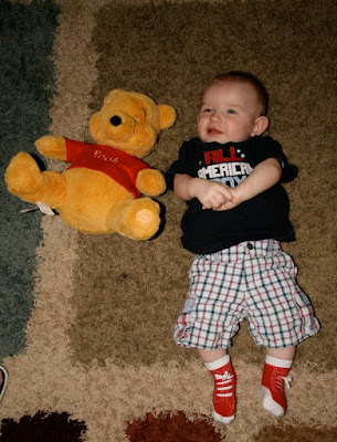 Each month brings such new things and you are such a happy baby. I look at video from a month ago and I am surprised how much you change in one month. You can crawl pretty fast now and are aware of so many more things. You know the sign for "milk" and if I ask you "do you want a bottle?" when you are hungry, you let me know.. Yes! So I have learned not to ask that question unless I have the bottle pretty much ready to go.