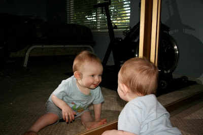 Lots of new tricks this month. I think this was your second biggest month for change. You started out the month barely sitting and crawling commando style to now crawling on your hands and knees and easily sitting up. You are quite the mover now and can get anywhere you want to very quickly. Lastly, you also just figured out how to pull up using us as your ladder. We are amused as you try relentlessly to get onto your feet and hands and try to stand up, but you just don't have the core strength to pull up yet. We give you a week or two and you will be there. However with all these new skills comes restless nights. You are our 2:30 wake up call each night and we find you stuck, sitting up in the crib, crying out until we come in and lay you back down. Sometimes it take two-three rounds before you stay down and are convinced we haven't abandoned you. Lately it has just been once, so I am hoping that our attempts at sleep training will pay off and you won't wake soon.